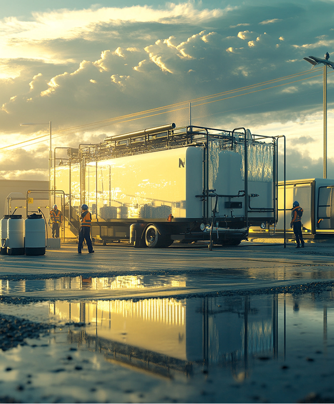 Нашите решения за мобилно водоснабдяване осигуряват чиста питейна вода в кризисни и отдалечени райони. Те включват мобилни пречиствателни станции, системи за пълнене и разпределение, както и технологии за хлориране и анализ на водата. Благодарение на тях може да се гарантира безопасност и достъп до жизненоважен ресурс навсякъде и по всяко време.